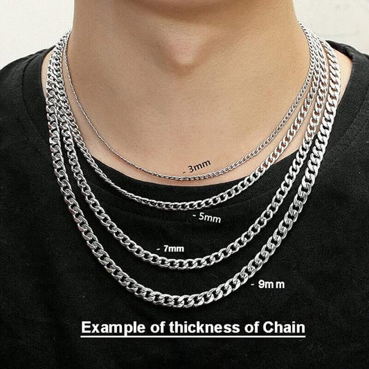 Daisy Philip 3mm 5mm 7mm 9mm CURB Mens Necklace Silver Chain Cuban - Stainless Steel Jewellery - Neck Link Chains for Men Man Women Boys KidsRegular price From £6.99 GBPRegular priceUnit price / per-