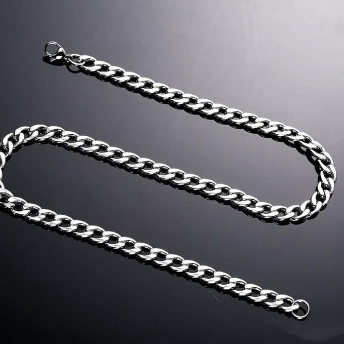 Daisy Philip 3mm 5mm 7mm 9mm CURB Mens Necklace Silver Chain Cuban - Stainless Steel Jewellery - Neck Link Chains for Men Man Women Boys Kids