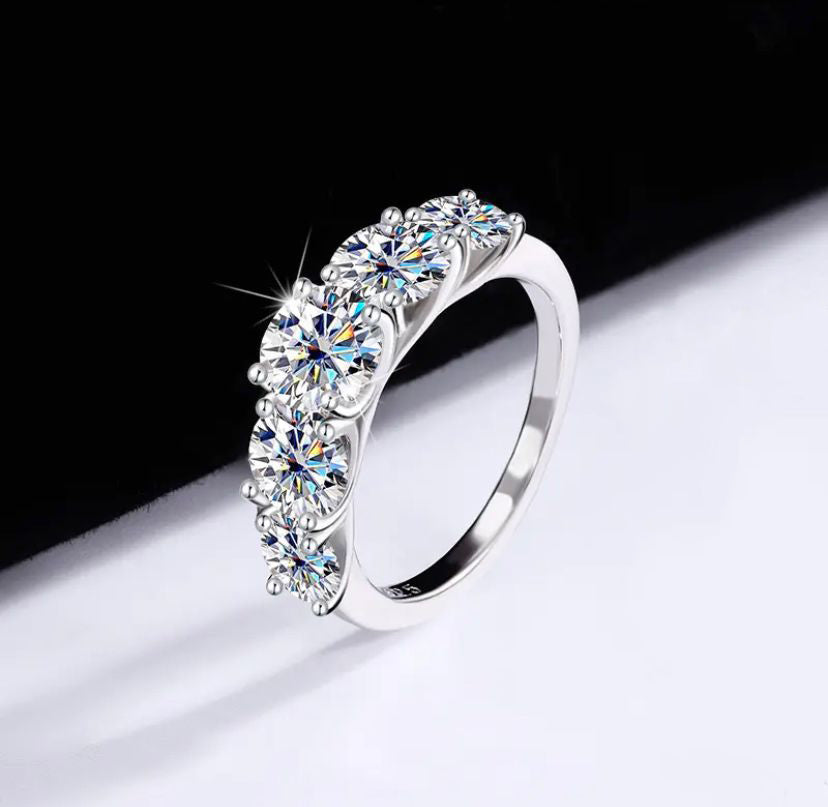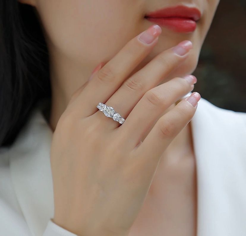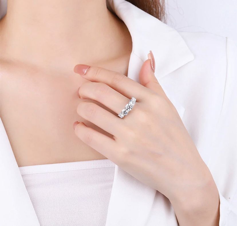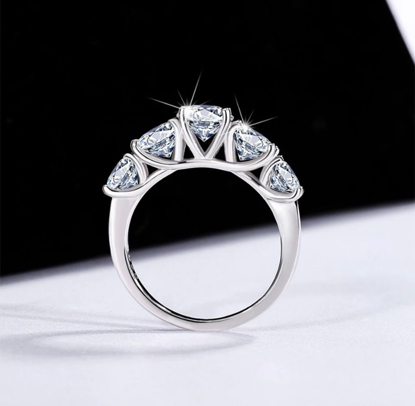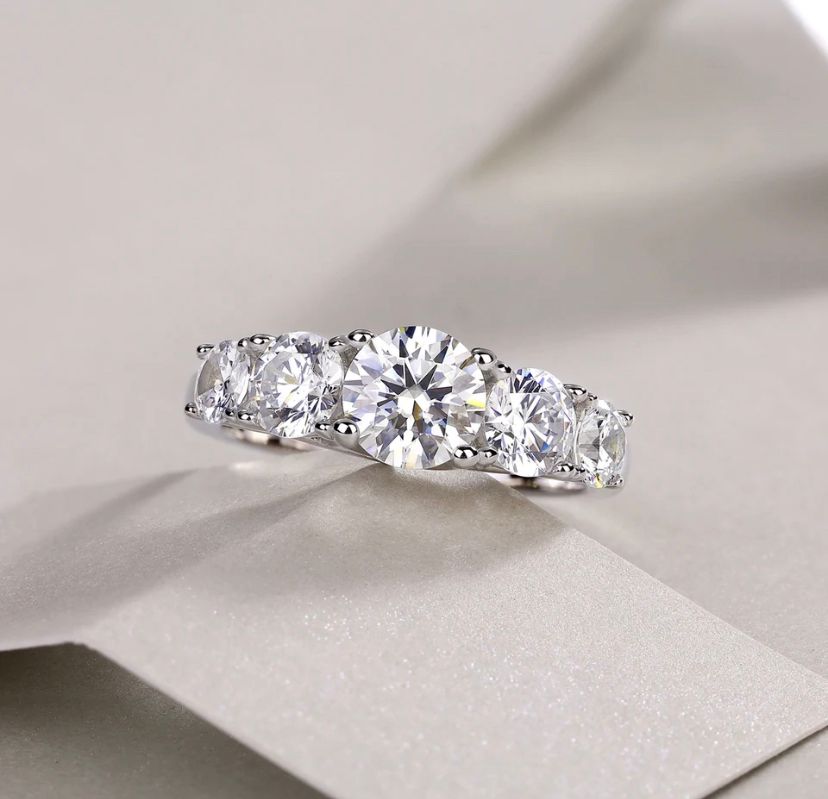 💎Exquisite Materials: This 3.6-carat sterling silver ladies' diamond ring features a classic four-prong setting and is crafted with D color VVS1 clarity curved faceted cut stones. The centerpiece is adorned with five sparkling moissanite stones totaling 3.6 carats, enhancing the brilliance of the engagement ring. S925 engagement rings are incredibly dazzling, beautiful, and exquisite, resembling real diamond rings. This women's ring will perfectly highlight your elegance, beauty, and glamour.