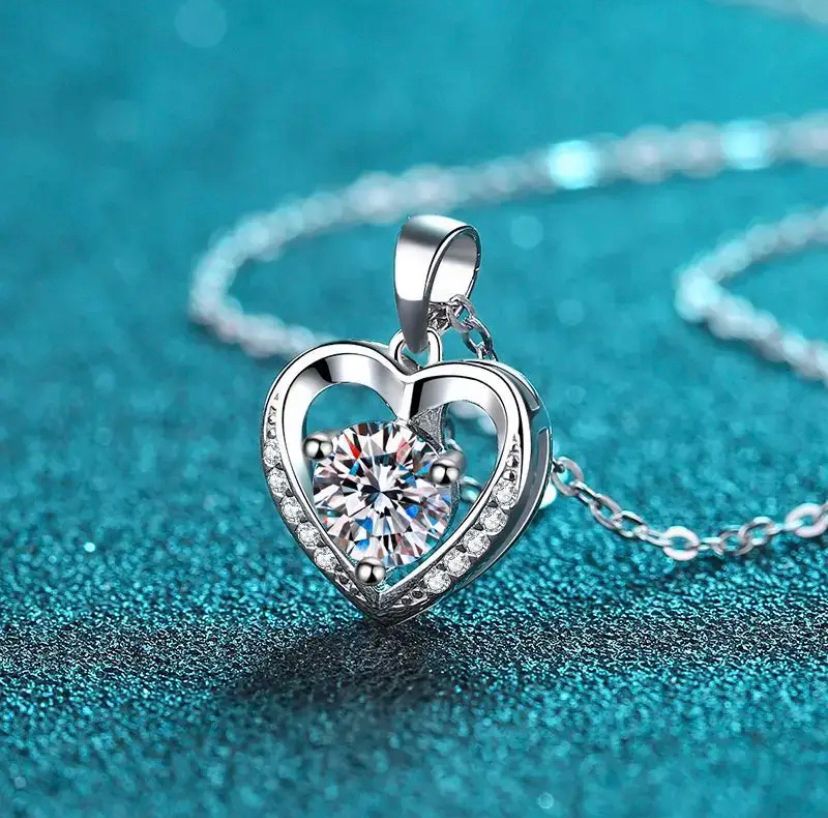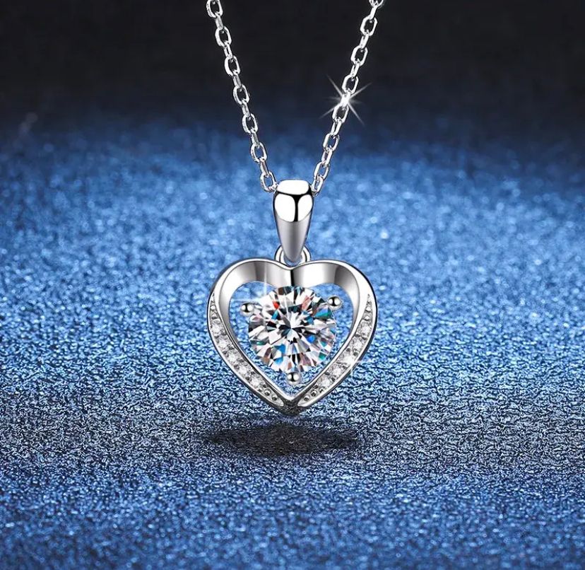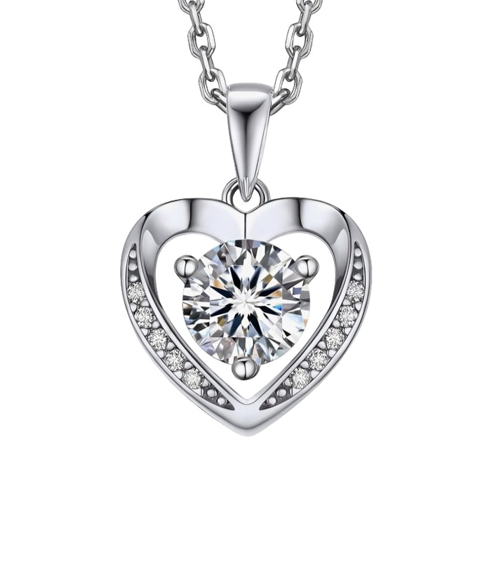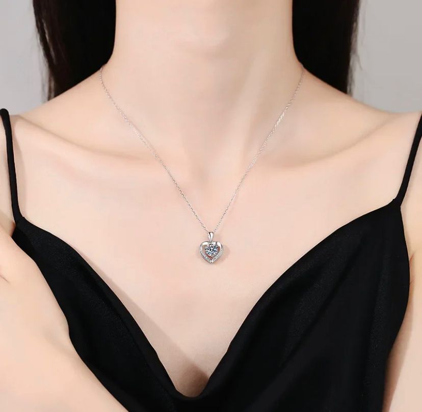 💎Exquisite Materials: This heart necklace for women is a perfect expression of love. It features a round brilliant cut center moissanite (6.5mm/1ct) in a 3-prong setting. Adorned with 10 accent moissanites, this silver heart pendant makes an ideal gift for her.