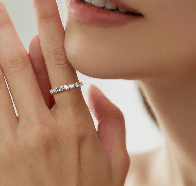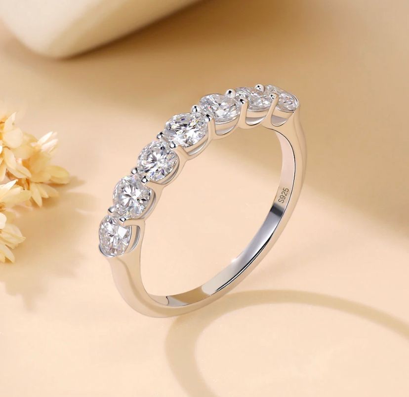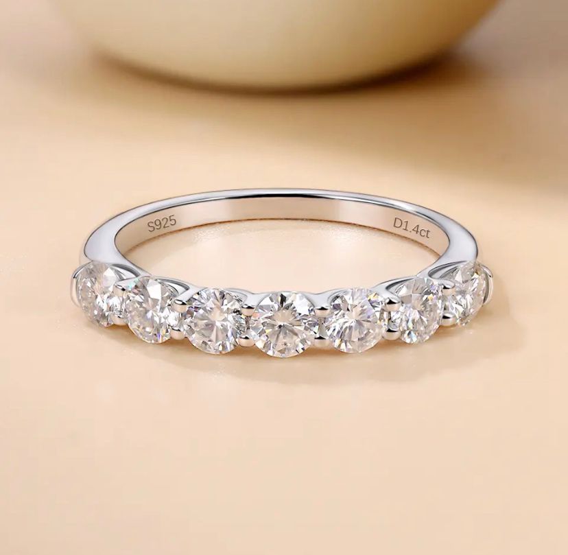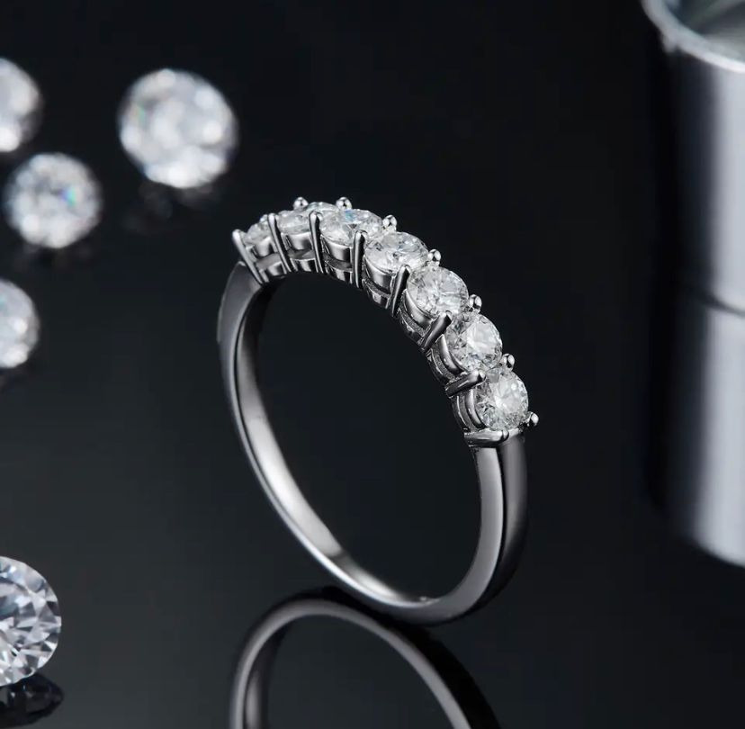 💎Exquisite Materials:This wedding band features 7 pieces of VVS moissanite stones, each shining as brilliantly as real diamonds. It's the perfect matching band to complement your engagement ring or wear alone.